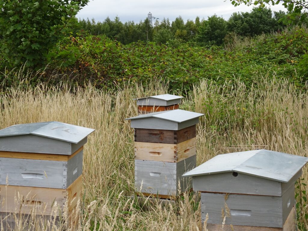 Pour le développement de la biodiversité, dans la continuité des jardins potagers, l’association implante des ruches sur des sites variés.