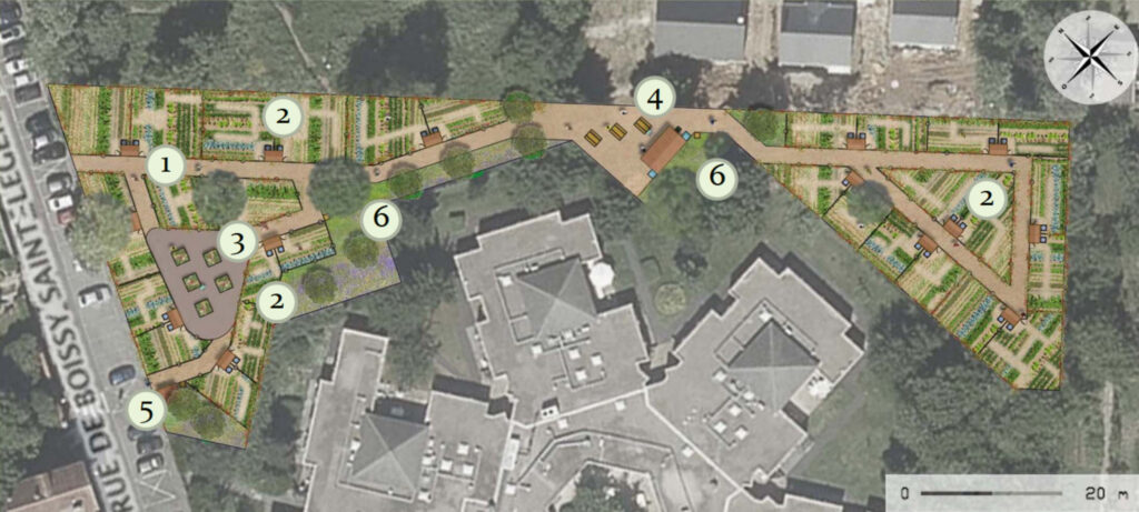 L’aménagement qualitatif de cette parcelle en espace potager se compose ainsi :